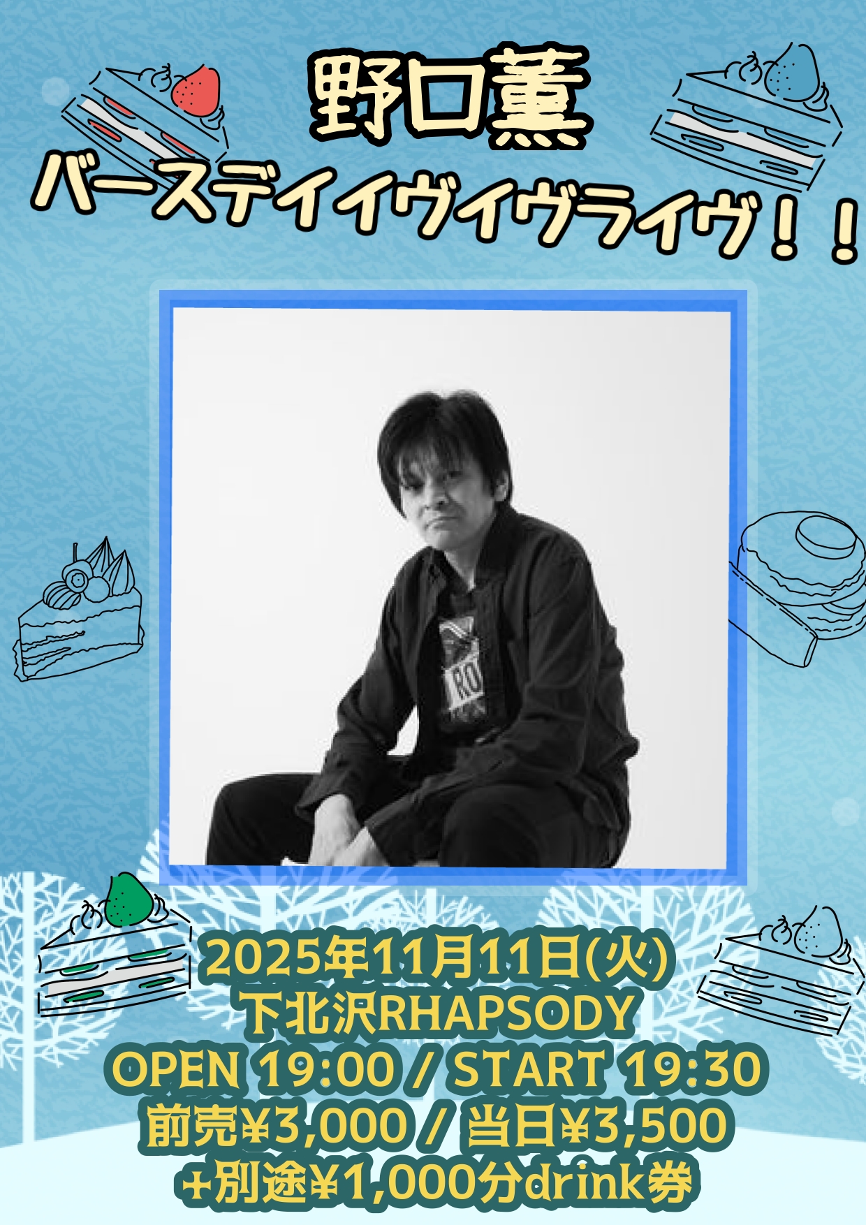 前売り¥3,000-/当日¥3,500-+別途¥1,000分drink券 -